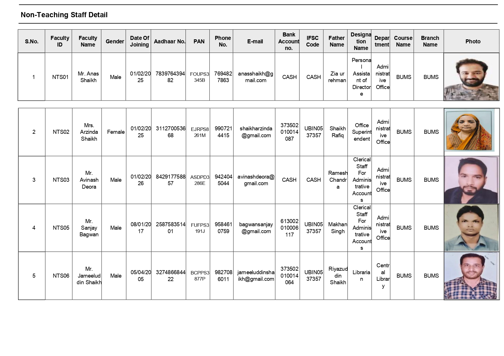Non-Teaching Staff